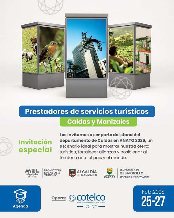 Prestadores de servicios turísticos de Caldas y Manizales Los invitamos a ser parte del stand del departamento de Caldas en la 45ª Vitrina Turística ANATO 2026, el escenario más importante […]