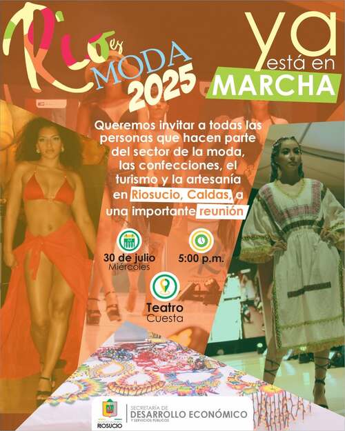 La organización del evento invita a las personas que hacen parte del mundo de la moda, las confecciones, el turismo y la artesanía en Riosucio, Caldas, a una reunión muy importante, en este encuentro para elegir a quienes los representaran en el equipo que se encargará de organizar la séptima versión de RÍO ES MODA para la vigencia 2025, evento que crece cada año gracias al talento, la creatividad y el ingenio de nuestra gente.