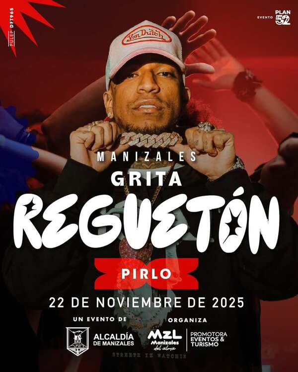 Sube el volumen, porque Pirlo llega a nuestra ciudad con todo su poder musical a Manizales Grita Reguetón Una noche para disfrutar del ritmo que mueve al mundo 22 de noviembre de 2025 Entrada libre. Sin boletería Evento para mayores de 14 años #Plan52 #MZLManizalesDelAlma #ManizalesGritaReguetón