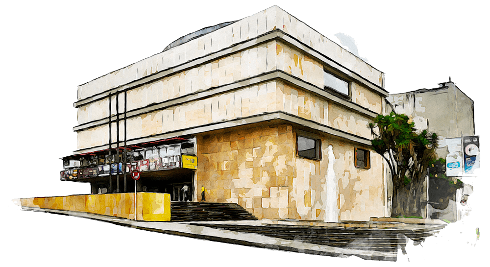 El diseño se basa en una planta rectangular con formas simples y volúmenes prismáticos, con fachadas limpias donde los materiales —especialmente el concreto— se exponen de manera racional y sin adornos. La estructura privilegia la horizontalidad y rompe con la simetría clásica, integrándose como un cuerpo autónomo dentro del entorno urbano. Grandes ventanales, calados en concreto prefabricado y líneas rectas definen su apariencia. El edificio se sostiene con un sistema de pórticos perimetrales que permite suspender la cubierta, fusionando estructura y cerramiento en una sola lógica constructiva.