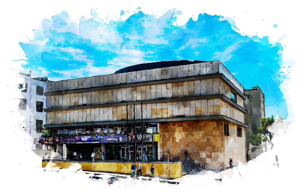 El diseño se basa en una planta rectangular con formas simples y volúmenes prismáticos, con fachadas limpias donde los materiales —especialmente el concreto— se exponen de manera racional y sin adornos. La estructura privilegia la horizontalidad y rompe con la simetría clásica, integrándose como un cuerpo autónomo dentro del entorno urbano. Grandes ventanales, calados en concreto prefabricado y líneas rectas definen su apariencia. El edificio se sostiene con un sistema de pórticos perimetrales que permite suspender la cubierta, fusionando estructura y cerramiento en una sola lógica constructiva.